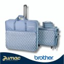Comprend le chariot pour la machine, le sac de rangement pour l'unité de broderie, le sac de rangement pour la boîte à accessoires